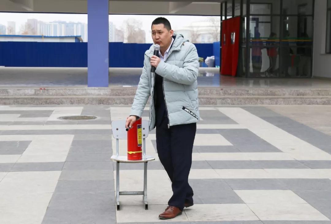 本次演練過程中,席耀科長就如何使用滅火器為學生們進行了細致的講解。梁和平處長講到,本次消防安全演練是開展安全教育工作的重點,是精神文明建設的突破口,我們要牢牢把握安全教育的核心,對學生們進行消防安全技能培訓,讓同學們提高對突發火災的應變能力、逃生技巧和自我保護能力,力求將火災的破壞力度降到最低。