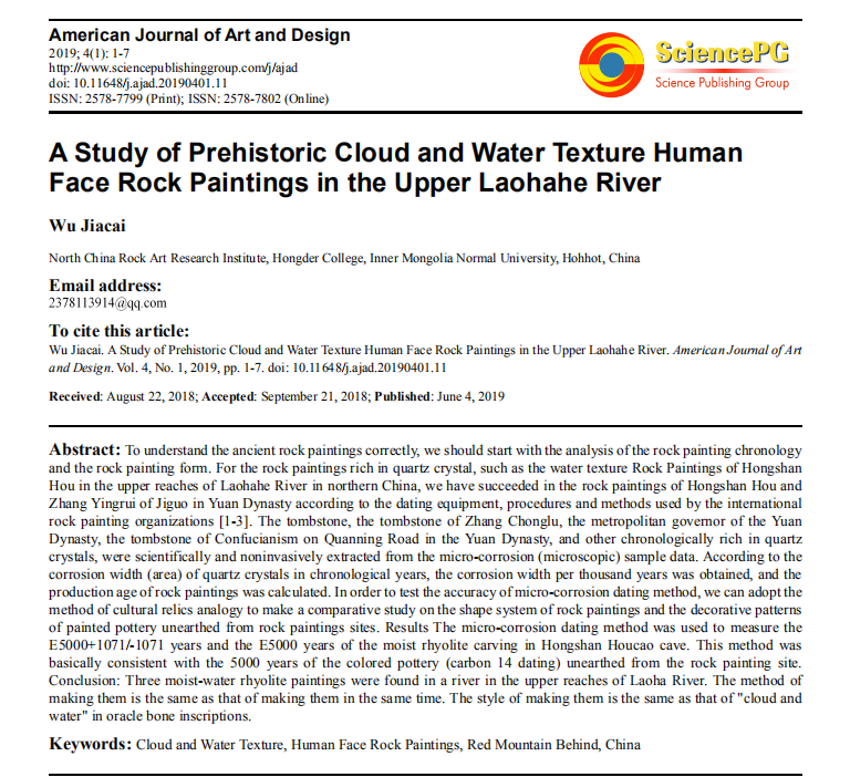 Wu Jiacai. A Study of Prehistoric Cloud and Water Texture Human Face Rock Paintings in the Upper Laohahe River. American Journal of Art