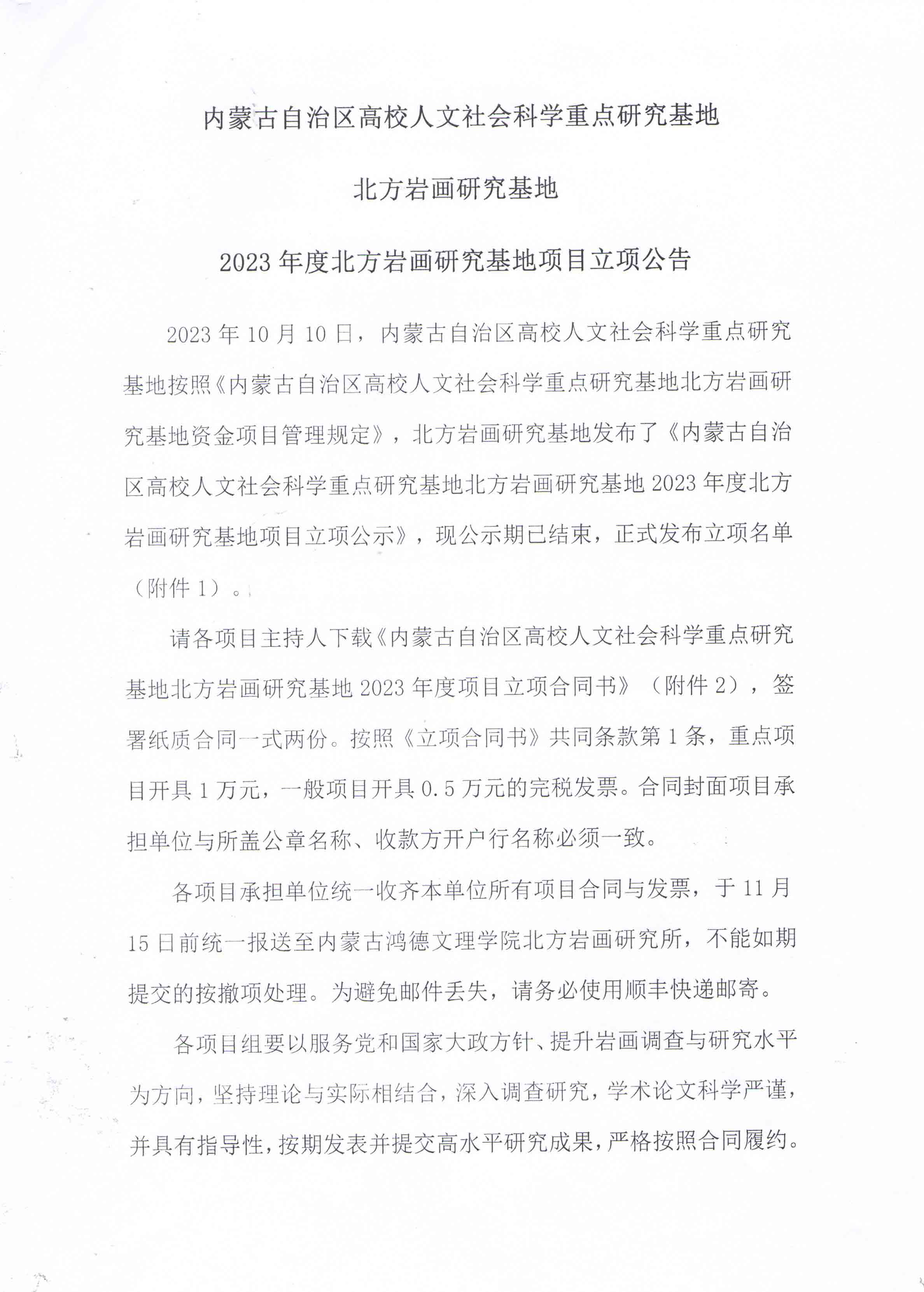 內(nèi)蒙古自治區(qū)高校人文社會(huì)科學(xué)重點(diǎn)研究基地 北方巖畫研究基地 2023年度北方巖畫研究基地項(xiàng)目立項(xiàng)公示