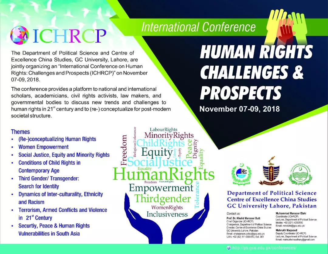 工作動(dòng)態(tài)/ NEWS11月7日,巴基斯坦拉合爾政府大學(xué)政治科學(xué)學(xué)院與卓越中國(guó)研究中心聯(lián)合舉辦第六屆“人權(quán):挑戰(zhàn)與展望”國(guó)際會(huì)議(International Conference on Human Rights: Challenges & Prospects),討論21世紀(jì)人權(quán)的新趨勢(shì)和挑戰(zhàn)。此次國(guó)際會(huì)議旨在為國(guó)際學(xué)者專(zhuān)家,社會(huì)活動(dòng)家,立法者和政府機(jī)構(gòu)提供一個(gè)平臺(tái),參與人權(quán)討論,并重新定義后現(xiàn)代社會(huì)結(jié)構(gòu)。