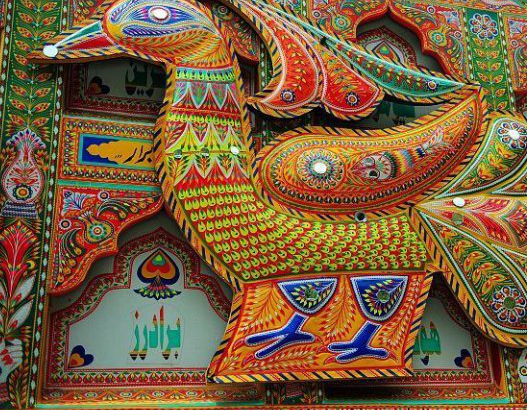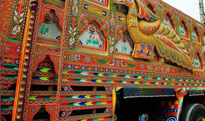 這個是我一輩子見過最為華麗壯觀裝飾的大貨車了,連車輪子都被司機精心裝飾了一番。相信如此美麗的卡車,應該是用以搬運珠寶錦緞真絲面料的吧。