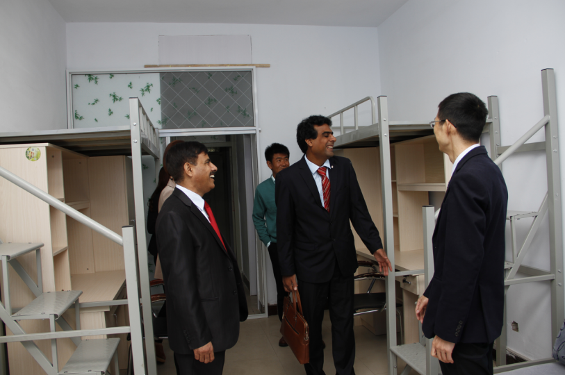 接下來我們去了留學生公寓,公寓里的環境給參贊留下了美好的印象。