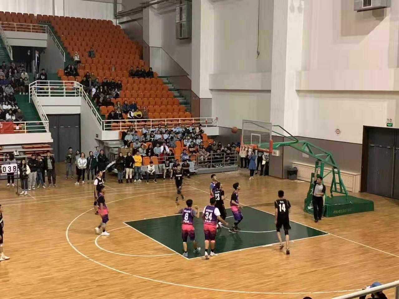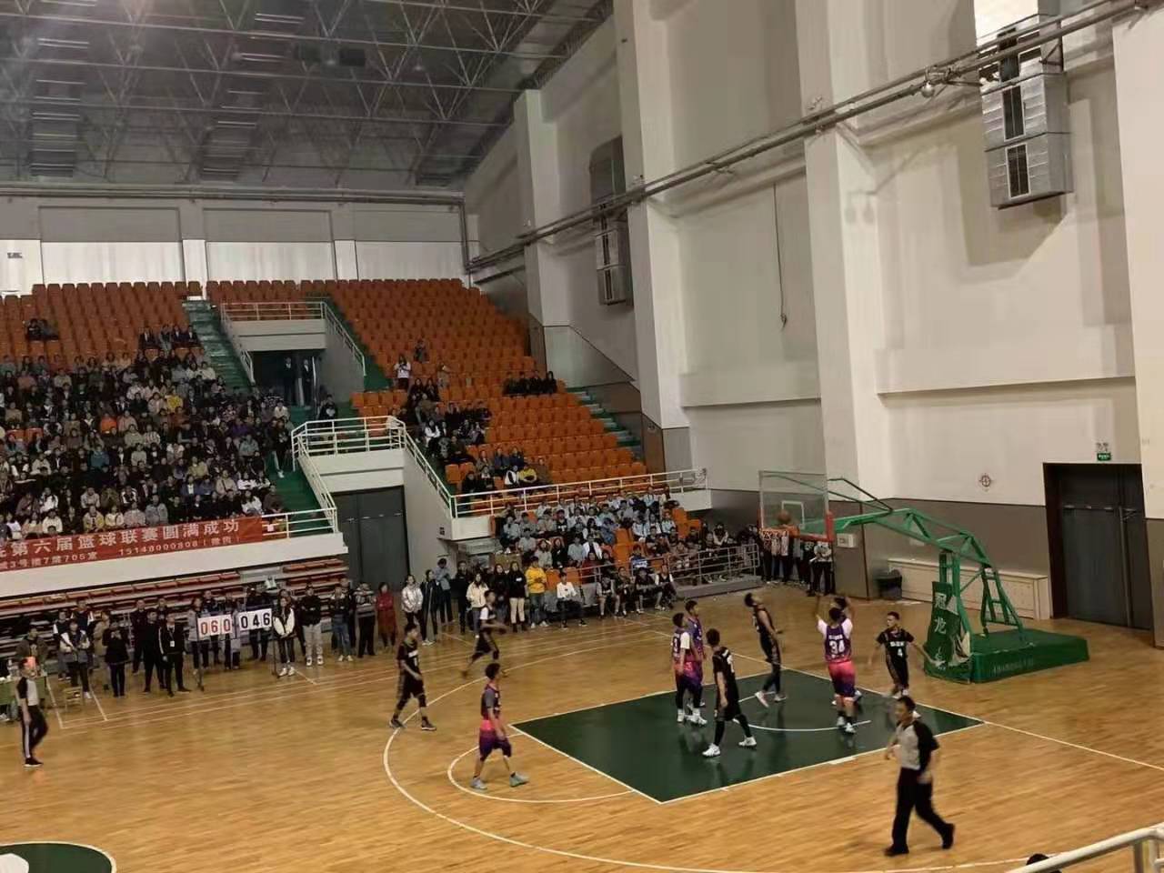 內蒙古師范大學鴻德學院第六屆籃球聯賽正在如火如荼的進行,2019年11月11日下午18點在文體館,外語系迎來了與經濟管理系的第一場對決。出席本次比賽的嘉賓有:外語系學管王妮老師、外語系教管劉瑜老師以及第十一屆團總支學生會主席團。