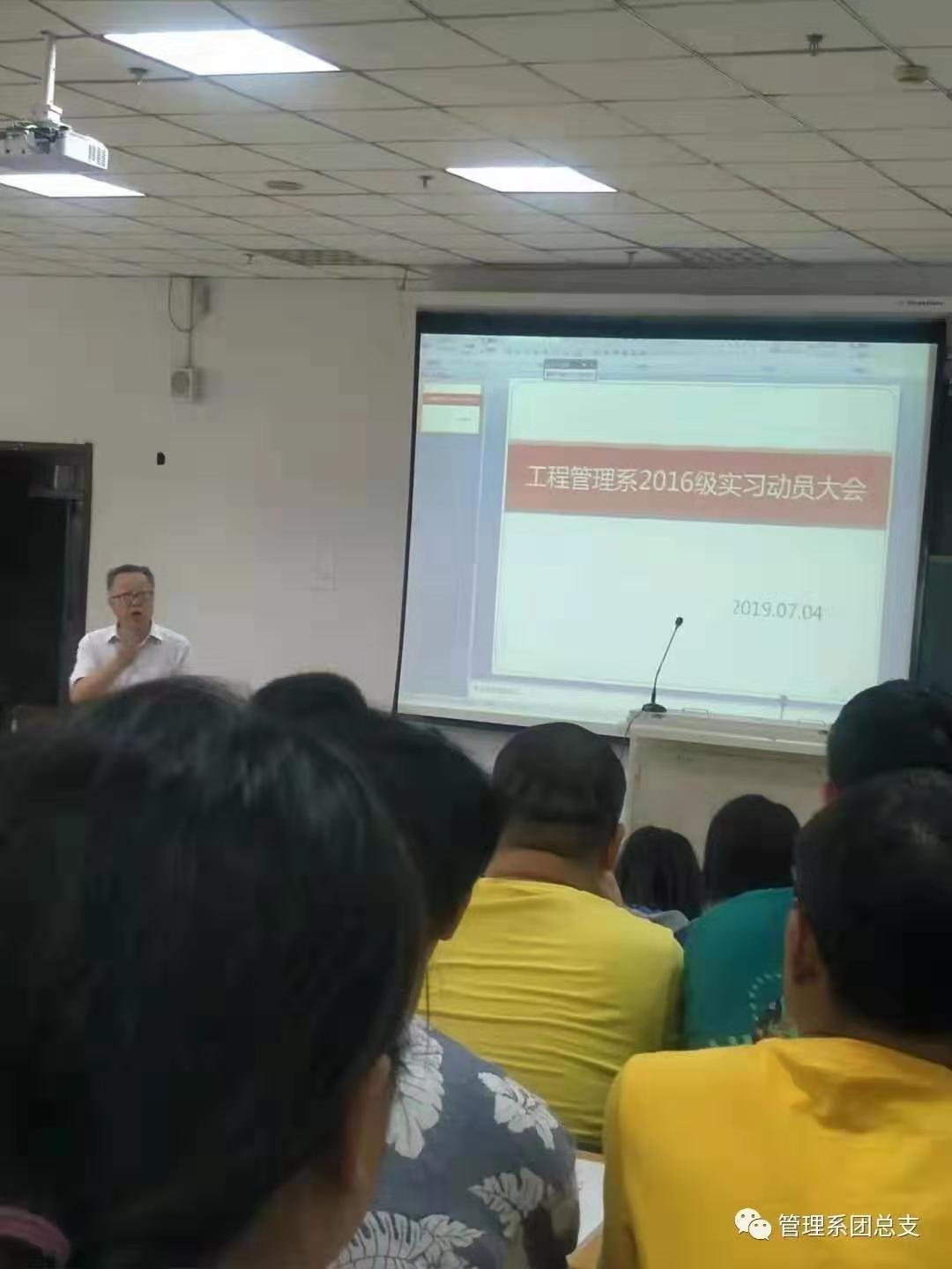 了解職業行業有很多方法,譬如閱讀相關的文章,請教業內人士,但最直接的方法還是親自做這份工作。2019年7月4日下午2:30,我系于一樓階梯教室召開工程管理系2016級實習動員大會。參加此次動員的大會的領導老師有:工程管理系主任張文生教授,土木工程教研室主任孔凡廣副教授,工程管理教研室主任賈鐵梅老師,物業管理教研室主任王小磊老師,教管羅曉波老師,學管姚志強老師。