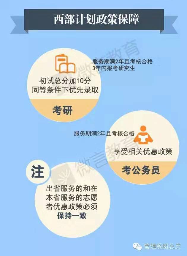A參加西部計劃的,服務期滿2年且考核合格的志愿者,報考公務員或3年內報考研究生均可享受相關優惠政策。