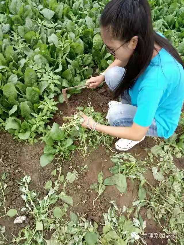 本以為有了面粉廠種植基地的經驗,隊員們會很快投入到勞動中去。但當小分隊一行人走進菜園里面才發現,小分隊成員們對菜地的了解簡直少的可憐,放眼向菜園看去,都望不到邊。緊接著,小分隊通過一個大娘了解到種菜要經過6個基本的過程:平底、起壟、播種、初期管理、中期管理、間種。了解了這些,小隊成員們更感覺到菜農們的辛苦、勞累。大家都躍躍欲試,想要幫農民伯伯們分擔一些。隨后,大家在大娘的安排下開始勞動,有的除草、有的澆水、甚至有的和大娘學起了如何分辨菜的種類,小分隊一行人忙的不亦樂乎。