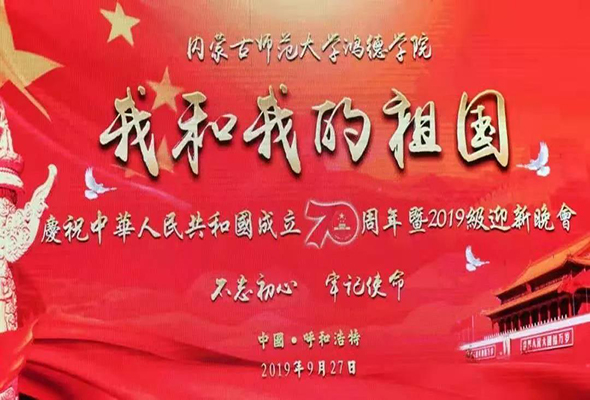 崢嶸七十載,共筑中國夢。正值“不忘初心,牢記使命”主題教育開展之際,內蒙古師范大學鴻德學院師生為慶祝祖國70華誕,于9月27日晚舉辦了“慶祝中華人民共和國成立70周年暨2019級迎新晚會”,黨委書記盧鳳龍、副院長王新剛、院長助理周偉、相關職能部門負責人、部分教師及2019級全體新生觀看了晚會。