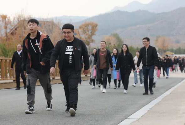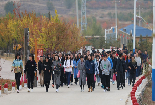 10月19日下午,在參觀完大青山紅色文化公園后,百余名教師來到大青山健身步道。金秋十月,大青山層林盡染,氣候宜人,隨著學院工會主席張建國發出的號令,教師們沿著事先計劃好的路線出發。路上大家熱情高漲,徜徉在美麗的山林間,沉醉于清新的空氣中,一路交談一路歡歌。