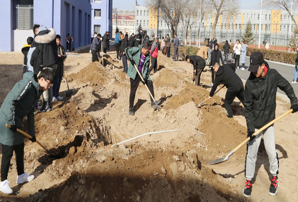 2019年11月14日中午,內(nèi)蒙古師范大學(xué)鴻德學(xué)院院長(zhǎng)周玉樹、黨委書記盧鳳龍、院長(zhǎng)助理周偉,帶領(lǐng)部分職能部門教職工和工程管理系師生在學(xué)院西區(qū)新建的1、2、3號(hào)樓周圍開展挖樹坑勞動(dòng)。“學(xué)院西區(qū)新建樓宇周圍尚未綠化,根據(jù)學(xué)院規(guī)劃,西區(qū)要種近400棵樹,在土壤尚未封凍之前挖好樹坑,明年一開春好植樹。”總務(wù)處處長(zhǎng)焦建偉說(shuō)。