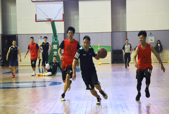 伴著運動員進行曲,8支參賽隊伍和啦啦操代表隊邁著整齊的步伐入場,一場場精彩激烈的比賽將在這里上演。揭幕戰在教職工籃球隊和人文系籃球隊中展開。比賽將整個開幕式推向了高潮,運球、投籃、防守、突破、雙方隊員進攻十分激烈,籃球在隊員的手中飛速傳遞,極大地考驗著彼此之間的默契配合。裁判員全場緊跟,秉承公平公正的原則,保障了比賽的公正性、連續性和觀賞性,為整場籃球比賽增添了更多的風采。經過激烈角逐,最終教職工籃球隊81:69人文系籃球隊,獲得比賽勝利。