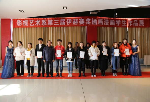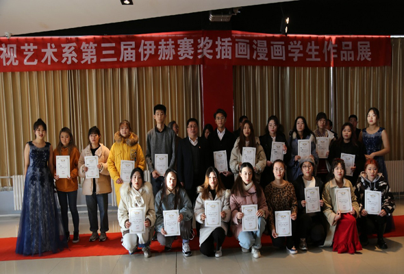 12月7日上午,內(nèi)蒙古師范大學(xué)鴻德學(xué)院影視藝術(shù)系第三屆伊赫賽獎(jiǎng)插畫(huà)漫畫(huà)學(xué)生作品展在學(xué)院崇德樓十樓藝術(shù)展廳開(kāi)幕。