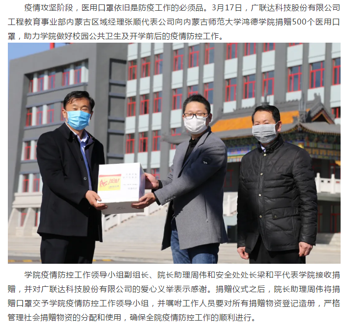 愛心企業向學院捐贈醫用口罩,助力打贏疫情防控狙擊戰