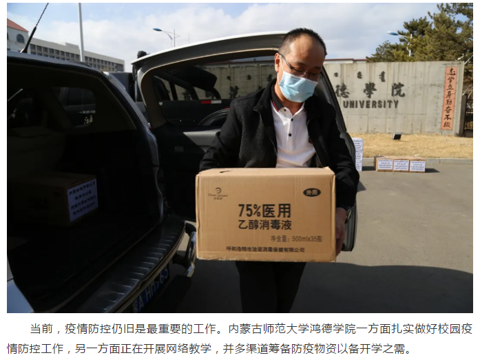 鴻茅藥業向內師大鴻德學院捐贈防疫物資