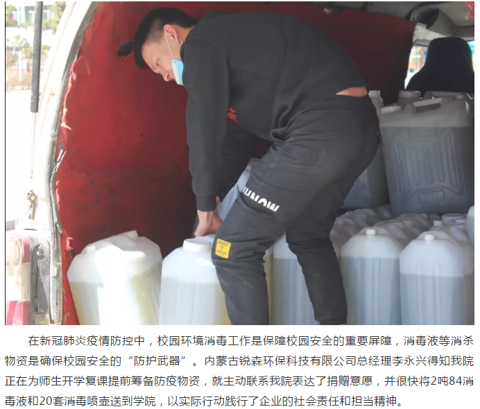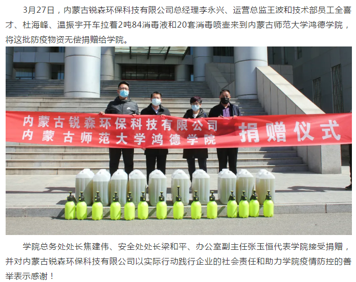 內蒙古銳森環??萍加邢薰鞠騼葞煷篪櫟聦W院捐贈防疫物資