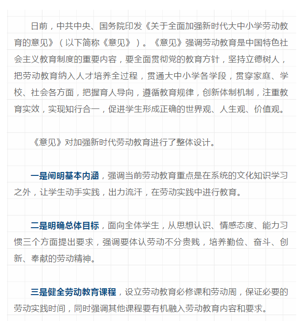 中共中央、國務院印發《關于全面加強新時代大中小學勞動教育的意見》