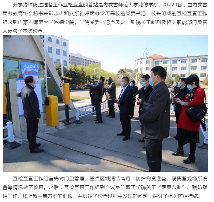學院迎接內蒙古民辦教育協會疫情防控互檢互查工作組檢查