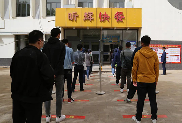 校門口設有等候區、身份核驗區、體溫測量區、消毒區和臨時留觀點。返校學生相互間隔1米,排隊接受完身份核驗、體溫檢測和全面消毒后,依次進入校園。隨著體溫檢測儀的報警,防疫人員立即引導體溫異常的學生轉移至臨時留觀點。