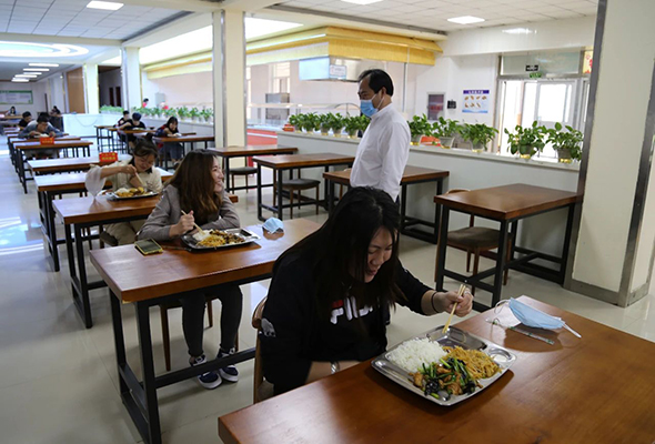 學院領導周玉樹、盧鳳龍、王新剛、劉文清、周偉及相關部門負責人到校門口、餐廳、宿舍等場所,跟同學們親切交談,詢問大家的學習、生活和就業情況,叮囑同學們要做好自身防護。