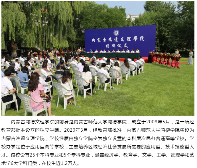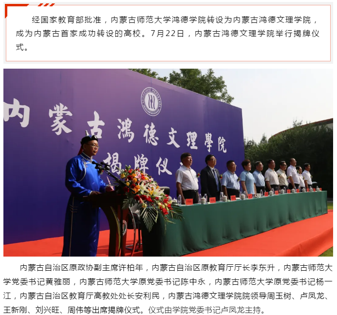 內(nèi)蒙古首家成功轉(zhuǎn)設的高校內(nèi)蒙古鴻德文理學院今日揭牌