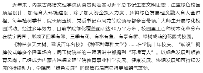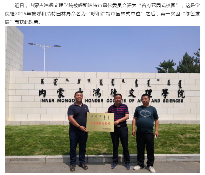 內(nèi)蒙古鴻德文理學(xué)院被評(píng)為“首府花園式校園”