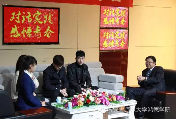 3月16日晚,周玉樹院長在校園電視臺與社會實踐表現突出的同學們展開交流,聆聽他們的創業故事,并和同學們一同對話,感悟青春。