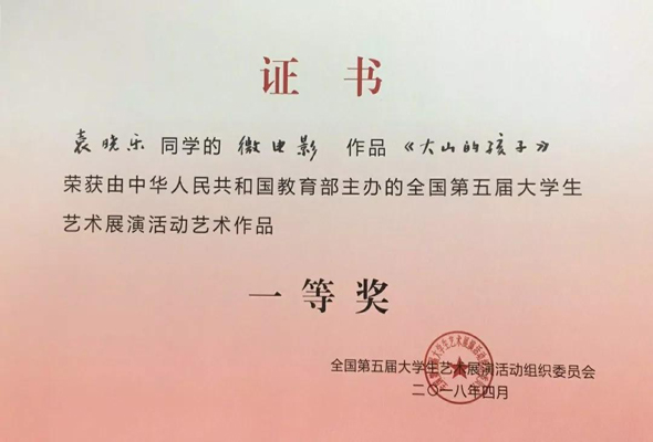 獲得第五屆全國大學生藝術展演活動藝術作品類一等獎