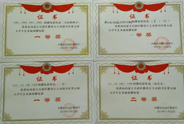 近年來,我院影視藝術分院廣播電視編導專業堅持實踐育人、以美育人,把美育教育融入人才培養體系,不斷創新實踐形式,積極推動大學生專業實踐能力,創作一批思想性與藝術性相結合的藝術精品,服務學校文化建設,提升廣大學生的品味志趣,塑造求真求美、向上向善的品質修養,教學水平和層次不斷提升,目前已步入全區各高校影視類專業的前列。在全國各類影視大賽中,不僅多次代表內蒙古地區參賽,而且很多成績的取得,在內蒙古各高校中也屬零的突破。在眾多的獎項中,無論是四川金熊貓電視節、北京大學電影節,還是上海大學生電視節、區內的各類賽事,每次獲獎,都伴隨著我院廣播電視編導專業在內蒙古,乃至全國各高校中影響力和知名度的不斷提升。特別是全國性的重大賽事對于我院知名度的提升具有重大意義,也為未來鼓勵學生創作更多精品增添了士氣,為未來一舉挺進國內、國際前列創造了可能。