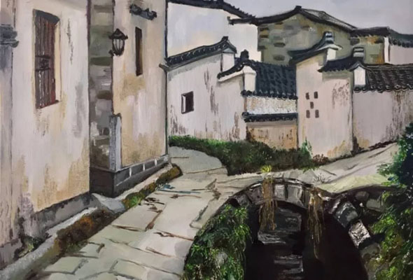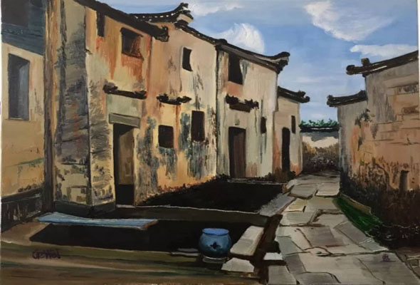 西遞,位于黃山南麓,高聳的山脈和平坦的田原共同圍筑起這個(gè)美麗的村莊,數(shù)百幢徽派古民居保留了明清村落的基本面貌和特征。這里素有“桃花源里人家”之稱,皖南的靈動(dòng)和秀麗在西遞的山水中得到了充分的體現(xiàn)。藝術(shù)系的學(xué)生們在老師的指導(dǎo)下,以徽派建筑為主要?jiǎng)?chuàng)作參照,完成了400余幅油畫、國畫作品。學(xué)生作品構(gòu)圖嚴(yán)謹(jǐn)、色彩生動(dòng),極富意境。