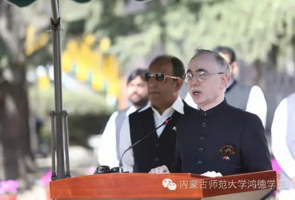 巴基斯坦駐華大使馬蘇德·哈立德在慶祝儀式上致辭,他指出,今年是中巴建交65周年,65年來中巴兩國友誼不斷加深,并且已經形成非常成熟的、多維度的、久經考驗的全天候戰略合作伙伴關系。兩國一直在努力追求經濟發展、為人民謀福祉和維護地區安全和平的共同目標。