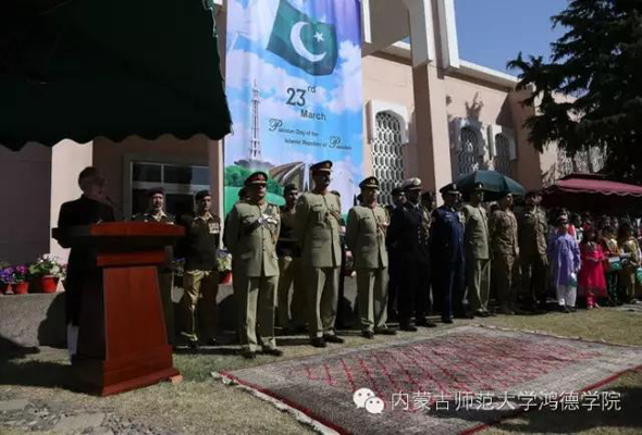 百余名使館官員和家屬,以及生活在北京的巴基斯坦企業家、留學生參加了儀式。在儀式的最后,哈立德大使和巴基斯坦兒童同唱巴基斯坦國歌,現場氣氛熱烈。據悉,3月23日這一天,巴基斯坦駐上海、成都、廣州、香港領事館也舉行了慶祝儀式。