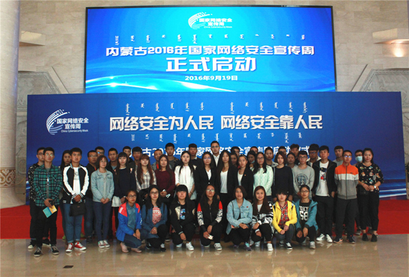 9月19日上午,內(nèi)蒙古第三屆國(guó)家網(wǎng)絡(luò)安全宣傳周在內(nèi)蒙古博物館啟動(dòng)。我院安全處治安科科長(zhǎng)焦巖帶領(lǐng)50名學(xué)生代表參加啟動(dòng)儀式。內(nèi)蒙古自治區(qū)黨委書記、自治區(qū)黨委網(wǎng)絡(luò)安全和信息化領(lǐng)導(dǎo)小組組長(zhǎng)李紀(jì)恒對(duì)此次活動(dòng)做了重要批示:“網(wǎng)絡(luò)安全事關(guān)國(guó)家安全,事關(guān)經(jīng)濟(jì)社會(huì)發(fā)展,事關(guān)人民群眾的利益,要通過舉辦國(guó)家網(wǎng)絡(luò)安全宣傳周等活動(dòng),推動(dòng)各級(jí)各部門樹立正確網(wǎng)絡(luò)安全觀,切實(shí)增強(qiáng)做好網(wǎng)絡(luò)安全工作的責(zé)任感和壓迫感;面向全社會(huì)普及網(wǎng)絡(luò)安全的知識(shí)和技能,全面提升全社會(huì)公民的網(wǎng)絡(luò)安全防范意識(shí)和能力,各級(jí)各部門要加快構(gòu)建關(guān)鍵信息技術(shù),全天候全方位感知網(wǎng)絡(luò)安全態(tài)勢(shì),不斷增強(qiáng)網(wǎng)絡(luò)安全防御能力和威懾力,加強(qiáng)依法治網(wǎng),大力規(guī)范網(wǎng)絡(luò)行為,努力創(chuàng)造安全健康的網(wǎng)絡(luò)環(huán)境。”