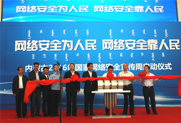 儀式最后,各廳局和呼市網(wǎng)信辦領(lǐng)導(dǎo)上臺(tái)共同按下內(nèi)蒙古2016年網(wǎng)絡(luò)安全宣傳周啟動(dòng)按鈕,內(nèi)蒙古第三屆國(guó)家網(wǎng)絡(luò)安全宣傳周正式啟動(dòng)。