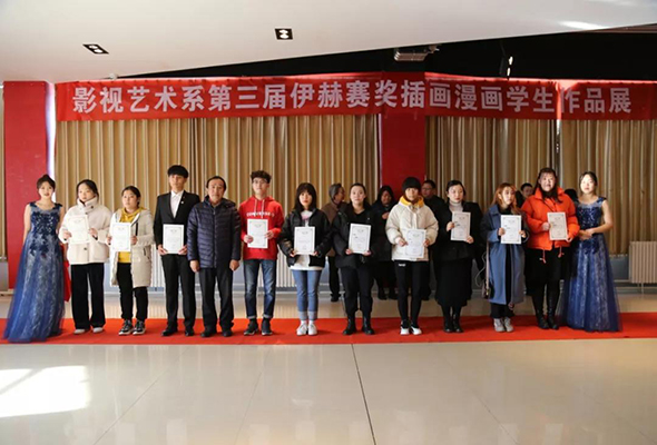 12月7日上午,內(nèi)蒙古師范大學(xué)鴻德學(xué)院影視藝術(shù)系第三屆伊赫賽獎插畫漫畫學(xué)生作品展在學(xué)院崇德樓十樓藝術(shù)展廳開幕。