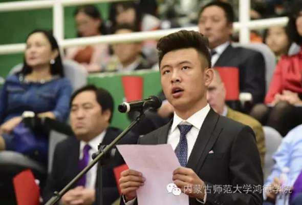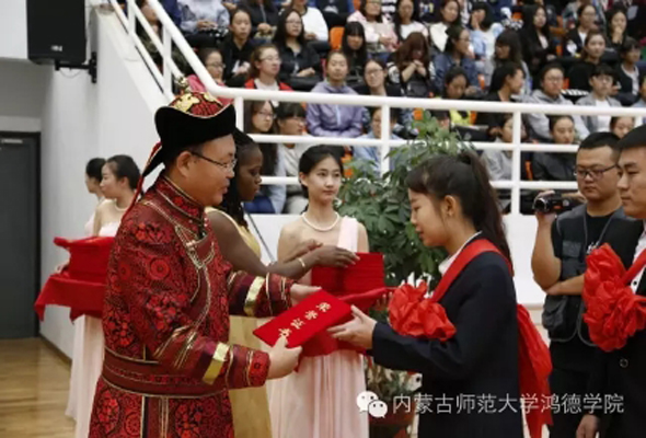 鴻德學院每年開學典禮上都會邀請一位著名的主講嘉賓為新生做勵志演講。曾邀請過內蒙古自治區的省級領導、國外的大學校長、巴基斯坦的駐華大使、內蒙古上市公司的老板等大咖,院長周玉樹講到,請到這些名人做報告,是對新生的一種尊重和禮遇。今年鴻德學院特別邀請到了英國特蘭米爾流浪者足球俱樂部主席馬克·帕里奧斯先生來到典禮現場,為新生展開精彩演講。
