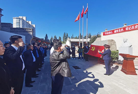 在講座之前,內蒙古鴻德文理學院聯合內蒙古赤峰商會,于9月18日在呼和浩特市新城區多松年烈士紀念館舉行了“不忘初心、緬懷先烈、銘記歷史”的主題教育活動。參加活動的黨員們參觀了多松年故居、向烈士敬獻了花籃、重溫了入黨誓詞。