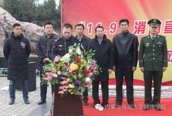 11月9日中午,由我院安全處主辦的“11·9消防宣傳日暨全國教育系統安全知識網絡競賽”啟動儀式于噴泉廣場舉行。出席此次活動的領導有:呼和浩特市消防支隊賽罕區大隊二中隊隊長尹子龍、呼和浩特市公安局鴻盛園區派出所所長兼我院法制副院長李愛國、我院副院長王新剛、學生處處長周玉森、學生處處長任鳳桃、團委書記王佳麗、總務處處長焦建偉、安全處處長梁和平及各系(分院)學管等。