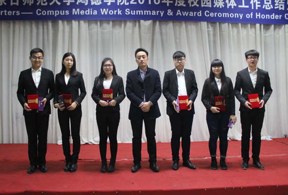 頒獎儀式結束后,學院辦公室副主任白樺發(fā)表講話。白樺主任首先對各媒體一年來的努力工作表示肯定,對于大家的辛勤付出表達由衷的感謝。白主任講到,隨著學院的不斷發(fā)展,校園媒體也從之前的實踐實訓平臺逐漸演變?yōu)閷W院宣傳的重要載體,成為了鴻德學院對外宣傳的喉舌和輿論導向的風向標。學院在對學生的培養(yǎng)上,無論從招生就業(yè)還是教育過程,都十分注重專業(yè)技能的培養(yǎng),這也讓一批又一批的學生記者能夠用知識武裝頭腦,從而在校園媒體中更好的開展工作。在今年的宣傳工作上,總體稿件發(fā)布量比去年增長30%,這個數(shù)字也充分說明學院在新聞宣傳工作上取得的突破與成績。