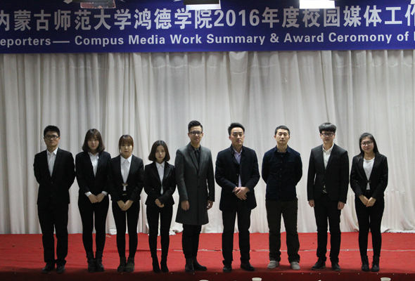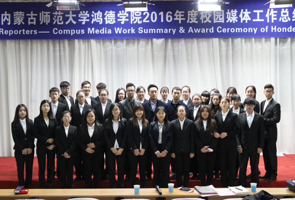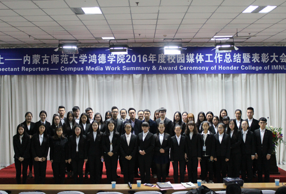 12月26日晚,內蒙古師范大學鴻德學院2016年校園媒體總結暨表彰大會在圖書館五樓報告廳隆重召開。學院辦公室副主任白樺,校園媒體負責人、學院辦公室馬明亮老師以及人文系新聞教研室副主任呂梁老師出席。來自校園四大媒體的150余名記者參加了此次大會。