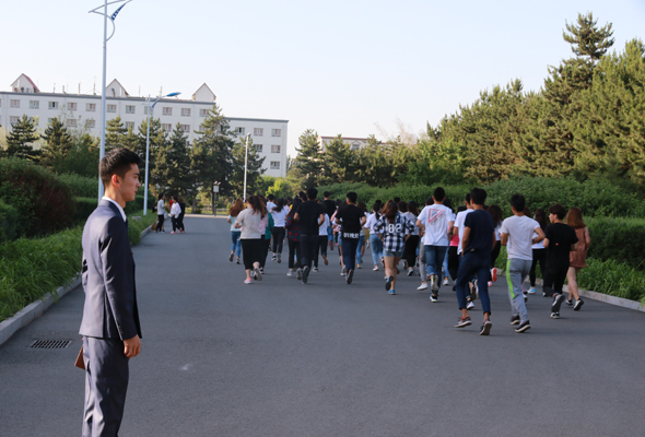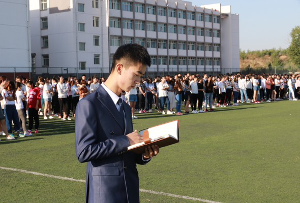 6月12日,經過了為期一個月的培訓,2017年度“一日院長”祁文強正式上任。早上7點,伴隨著清晨的第一縷陽光,祁文強身著學院為其量身定制的職業裝來到操場,查看同學們的早操情況。