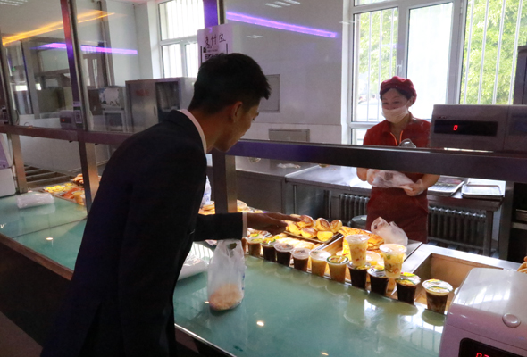 早操結束后,“一日院長”祁文強來到食堂開始用餐。他也提示同學們一定要注重早餐的重要性,保證早餐營養的攝入,才能一天活力滿滿。