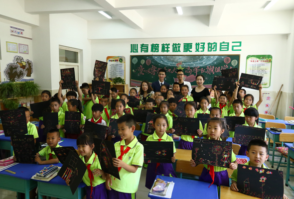下午3點,“一日院長”祁文強來到綠地小學,開展“一日院長公益行”活動。此次公益行祁文強還從我院的“青春好望角”找到了近200本課外讀物來送給孩子們。同時他還在課堂上教同學們手繪裝飾畫,與大家一同感受親自動手制作的樂趣。