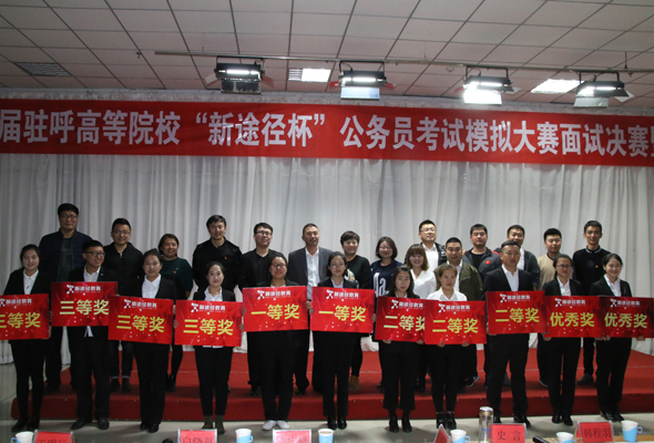11月1日晚,第五屆駐呼高等院校“新途徑杯”公務員考試模擬大賽面試決賽暨頒獎典禮于我院正式舉辦。新途徑教育韓程羽老師、杜其益老師、史言老師,我院招生就業處處長張振龍、學生管理科副科長白曉童、教務處教學科王明遠老師、招生就業處孟寶峰老師、各系(分院)學管干事出席了此次活動,我院2017級各系(分院)部分新生到場觀看了此次活動。