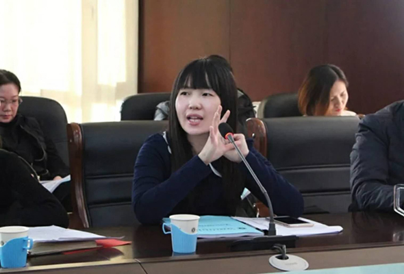 之后,外語(yǔ)系基礎(chǔ)教研室主任陳茜做工作經(jīng)驗(yàn)交流。陳主任從專(zhuān)業(yè)學(xué)科建設(shè)、專(zhuān)職教師隊(duì)伍建設(shè)以及制度建設(shè)展開(kāi)報(bào)告,介紹了外語(yǔ)系教研室深化改革的方式:“三課合一”,即期末測(cè)試加強(qiáng)口語(yǔ)考核、鼓勵(lì)學(xué)生參加社會(huì)實(shí)踐、教師緊抓教學(xué)質(zhì)量。同時(shí),她介紹了外語(yǔ)系教師聘請(qǐng)的制度和完善教學(xué)管理制度的方法。