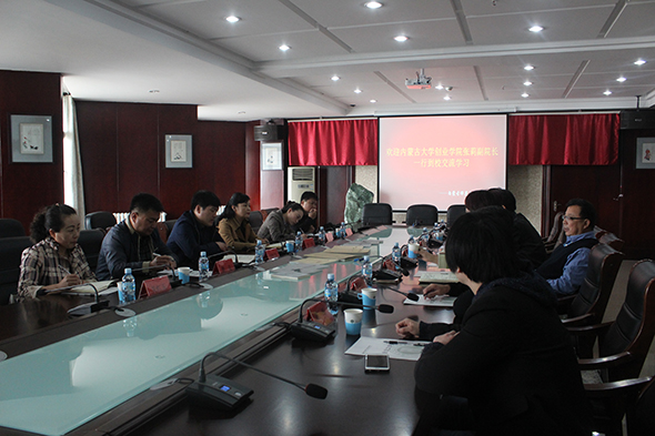 三月的呼和浩特,春意漸濃。3月21日,正值春分,溫潤潮濕的空氣布滿了城市上空。上午九時,鴻德學院迎來兄弟院校內蒙古大學創業學院調研組的到訪。創業學院黨委副書記兼副院長張莉一行6人,按照預約訪問的時間準時到達目的地。鴻德學院副院長劉文清教授熱情的接待了來賓,在崇德樓第一會議室主持召開了座談會。