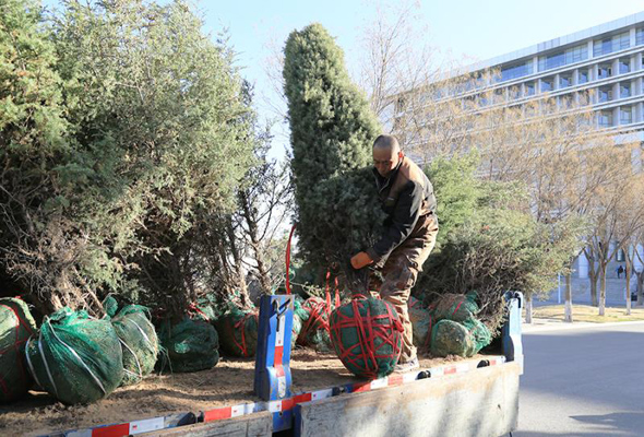 當日傍晚,鴻德學院參與綠化建設的師生在園林師傅的指導下,認真細致的測量樹坑的間距,從挖土、種樹再到填埋、澆水,每個細節都一絲不茍。總務處處長焦建偉在向記者談起校園綠化建設工作時,黝黑的臉龐流露出欣慰的笑容,他說:“每年的春季、冬季,我們都會開展校園綠化工作,按照季節特點栽種不同的樹種。你們看,這些年的建設,我們的校園已經有了高高的松柏、綠油油的草坪、鮮花盛開的桃林……看到它們就像自己的孩子長大了一樣,心里面特別的高興!”