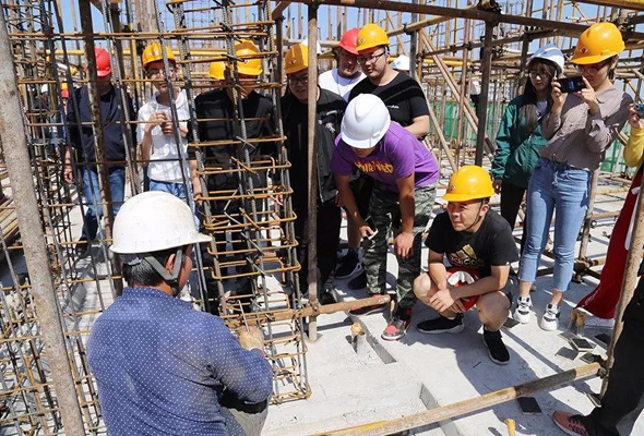 在鋼筋混凝土組成的施工架構中,同學們小心靈活地穿梭其間,緊跟著老師和工人師傅的步伐,認真聆聽老師對每一處設施、每一道工序建設原理的講授。男同學們聽過講解、觀摩后,在工人師傅的指導下躍躍欲試的拿起工具進行實地測繪、實際操作的嘗試。在一次次操作失誤后,同學們深刻意識到了實際操作和理論知識存在的差距,明白了“紙上得來終覺淺”的道理。