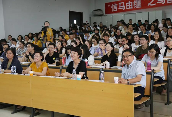 本網訊(文字/趙瞳 攝影/王宏志)5月31日下午,烈日炎炎下鴻德學院教學主樓上“崇德樓”三個大字折射出耀眼的光芒。時間剛到兩點,崇德樓三樓階梯教室里已經座無虛席。現場的老師和同學懷著滿腔的熱情和期待等候著主講老師——“崇德樓”題字的作者、鴻德學院的名譽院長鄭福田教授。