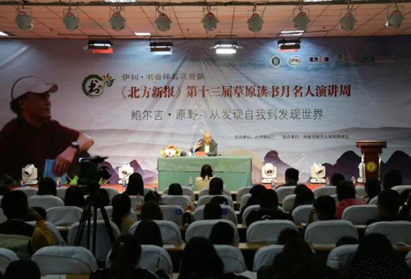 演講開始前,北方新報社副總經理、正北方網副總編輯周長翔與呂梁老師隆重的介紹了鮑爾吉?原野,并簡單概述了本次活動的目的和意義,即以實際行動來貫徹黨中央國務院關于開展全民閱讀戰略,全面落實自治區黨委政府關于推動我區全民閱讀工作規劃的一次重要舉措。