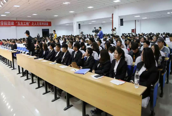 10月31日晚,由北方新報社主辦、鴻德學院協辦的伊利·書香伴著乳香飄——《北方新報》第十三屆草原讀書月名人演講周活動于我院圖書館五樓報告廳舉辦。出席本次活動的嘉賓及領導有北方新報總編輯、正北方網總編輯李德斌,北方新報社副總經理、正北方網副總編輯周長翔,鴻德學院辦公室主任張玉恒,團委副書記馬明亮,漢語言專業全體學生共計400余人參加本次講座。本次活動特邀蒙古籍作家鮑爾吉·原野進行主題為“從發現自我到發現世界”的演講。人文系新聞教研室主任呂梁主持本次活動。