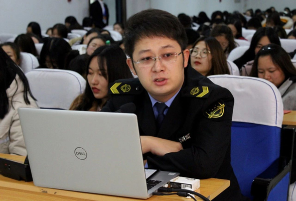 接著,張治中科長進行食品安全知識講解。張科長先向學生和商戶倆大主體提出食品安全要求。向學生提出在食品安全方面的“兩不要,一拒絕,一辨別”,學會約束自身,拒絕垃圾食品;向各商戶要求保障食品安全,從根本杜絕不安全食品。同時,張科長指出明年食品安全改革方向,他們的最終目的是爭取將食品安全風險等級降到最低。